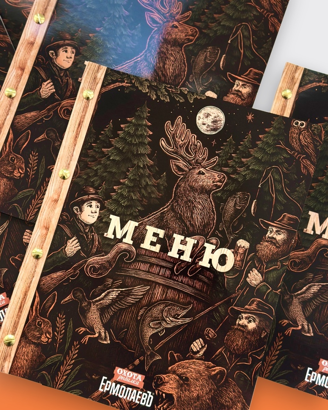 Клиент хотел, чтобы меню работало на имидж ресторана — не просто информировало о блюдах, а создавало настроение. Задача звучала так: «Хотим, чтобы гости сразу понимали — это место с характером».